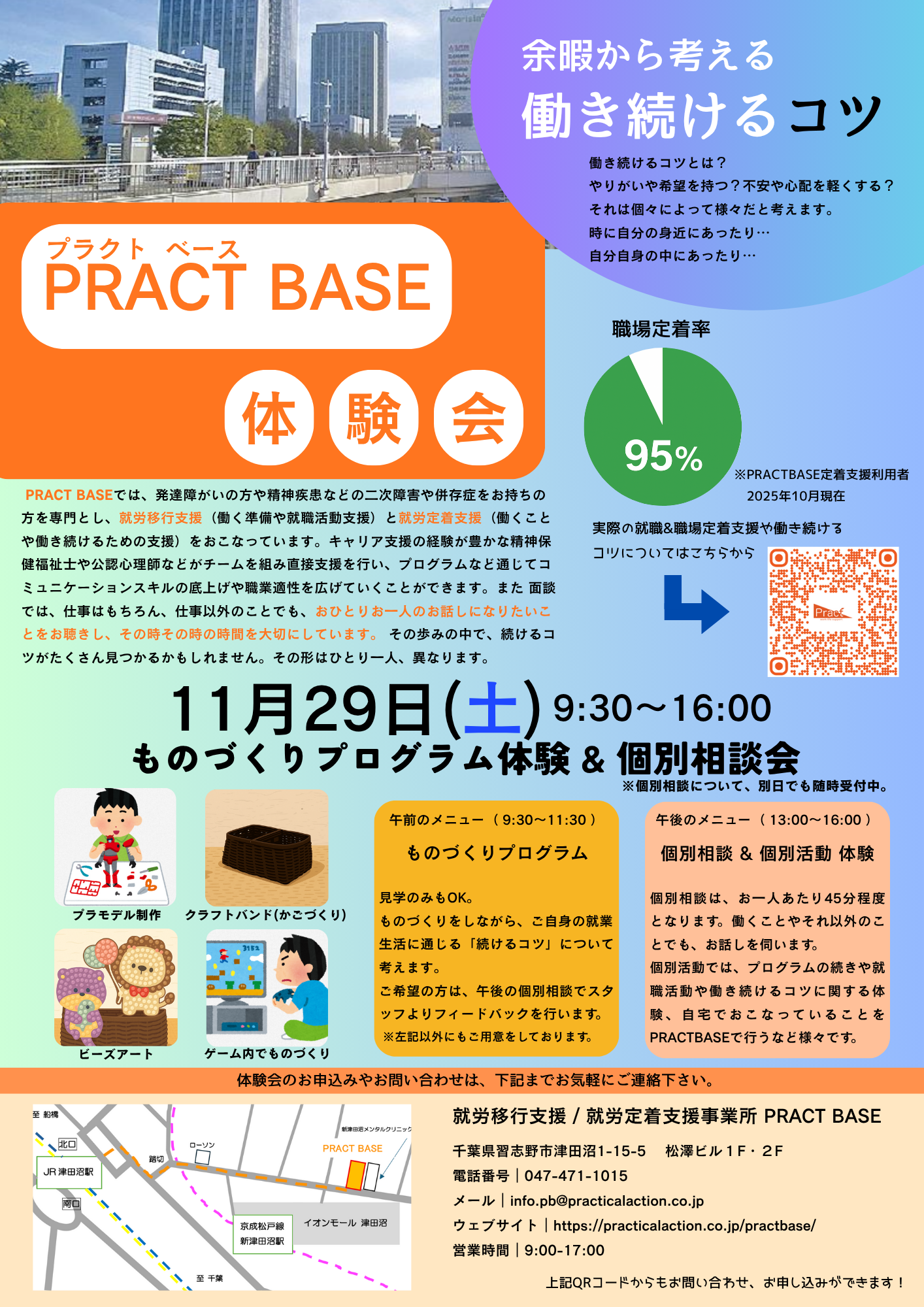 PRACT BASEでは、2025年11月29日(土)に「ものづくりプログラム体験&個別相談会」を開催します。ものづくりから就業生活に通じる「続けるコツ」を考えます。